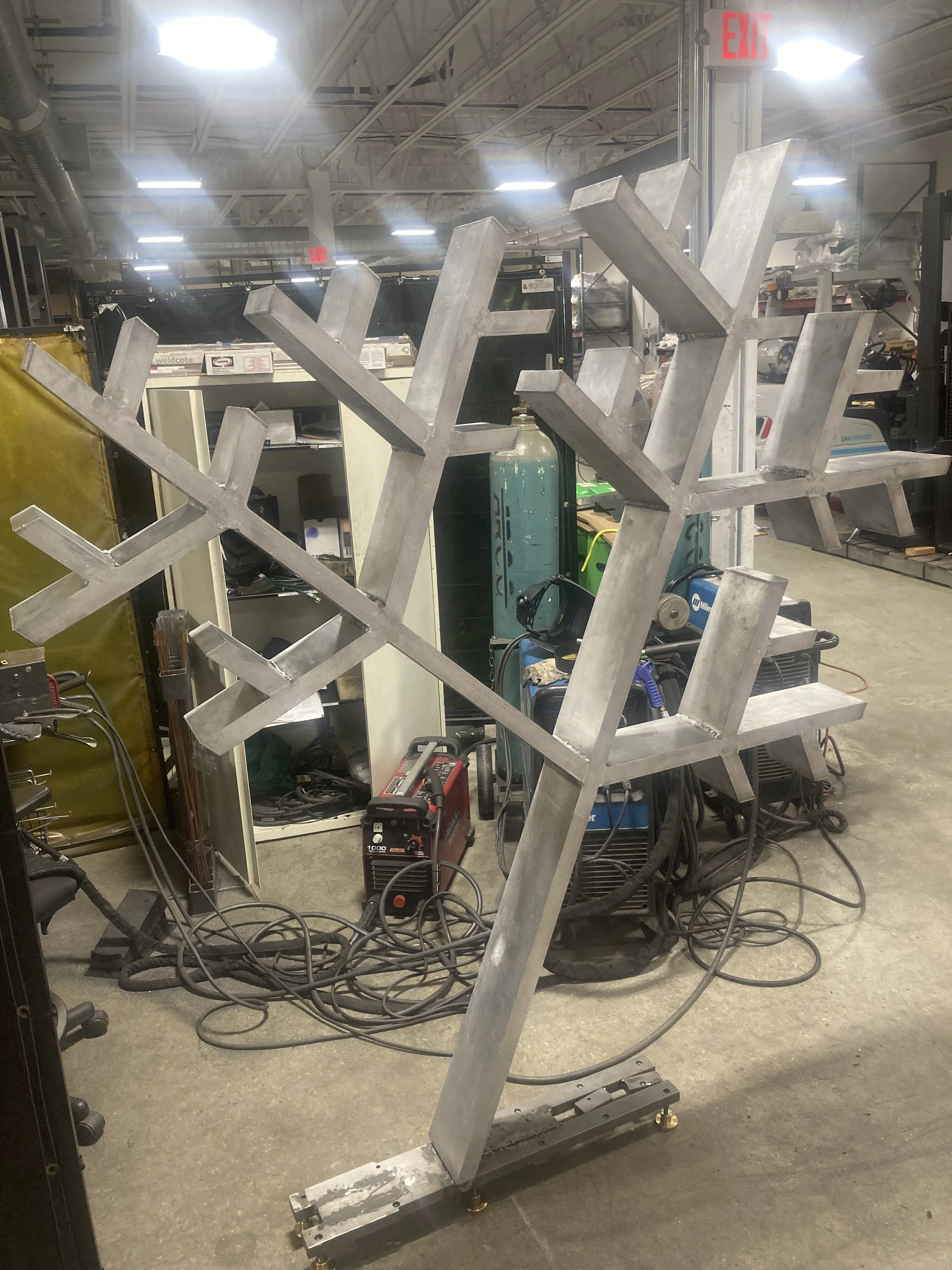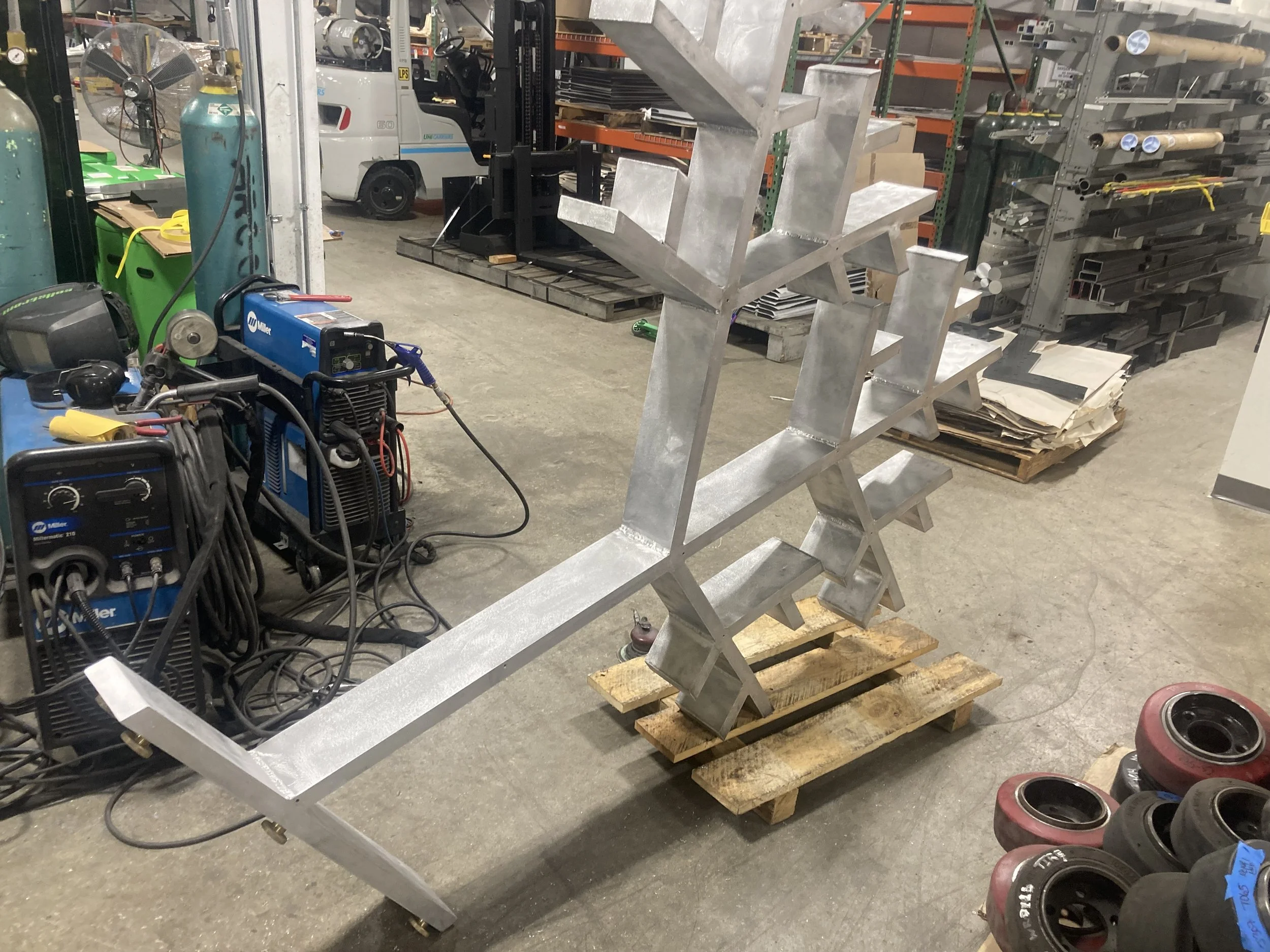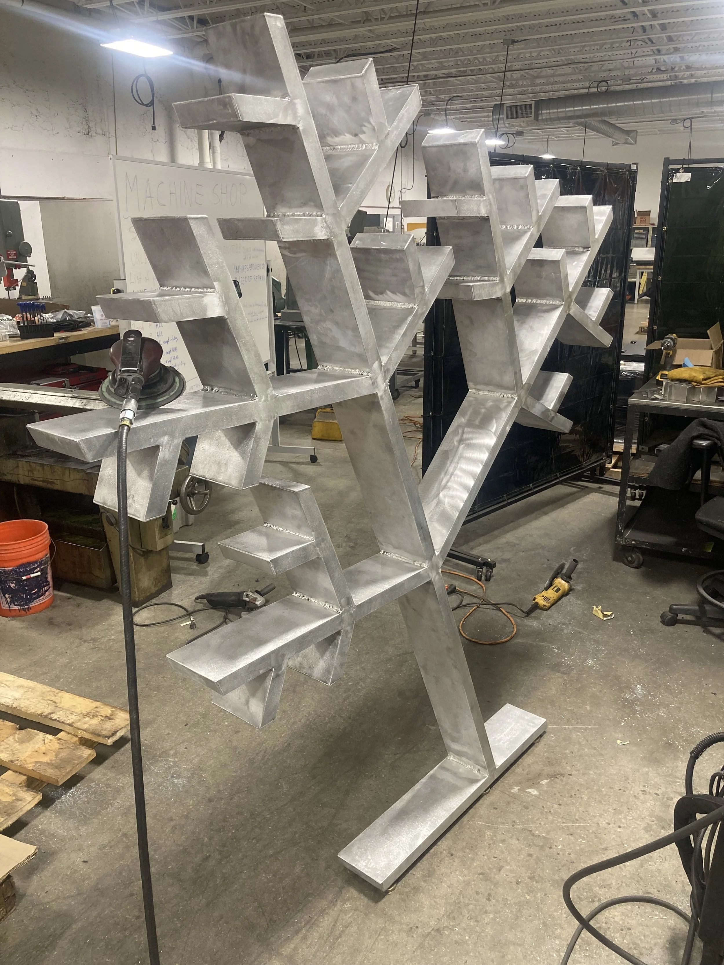 Fibonacci inspired aluminum bookshelf with an internal steel frame