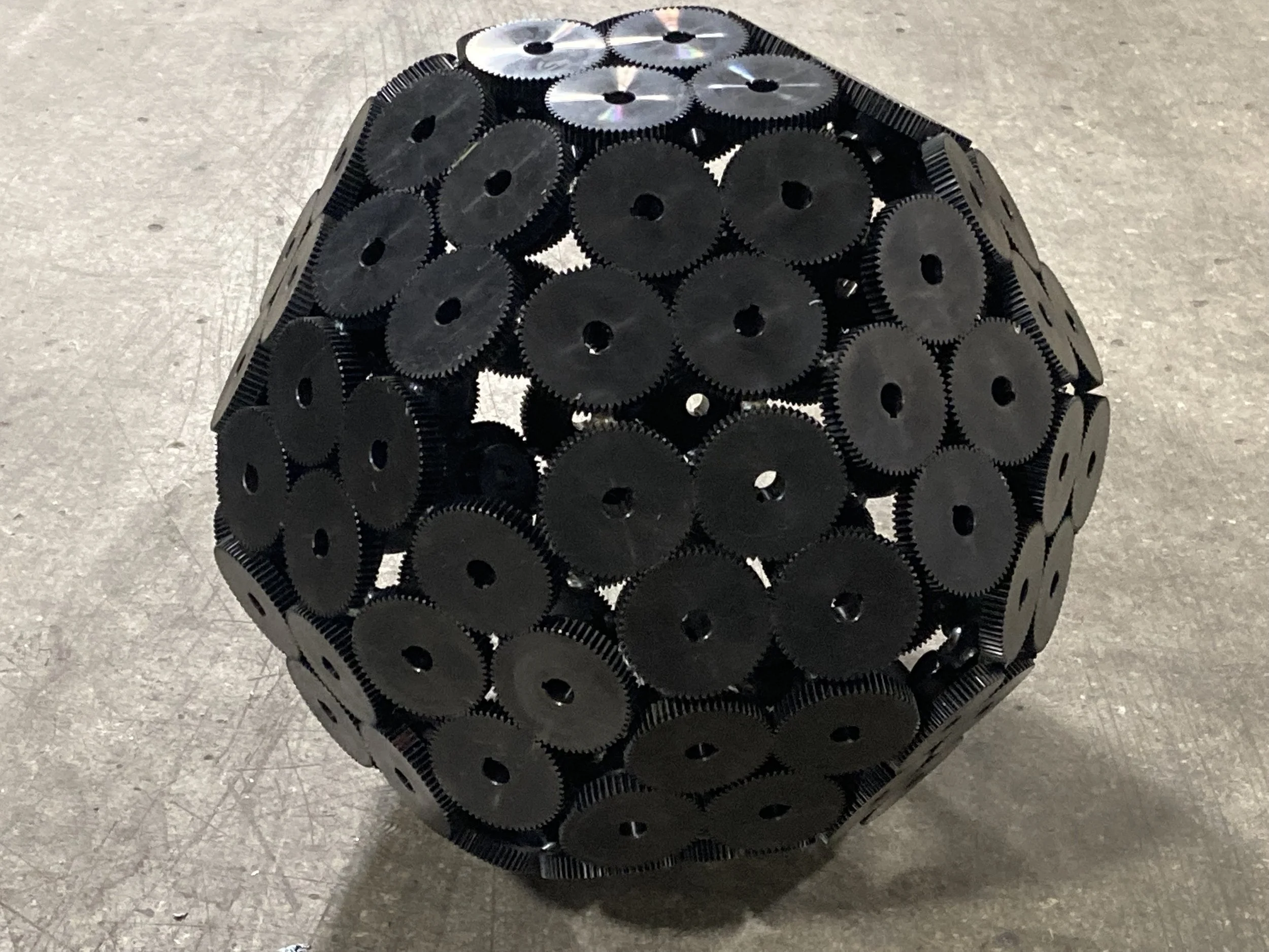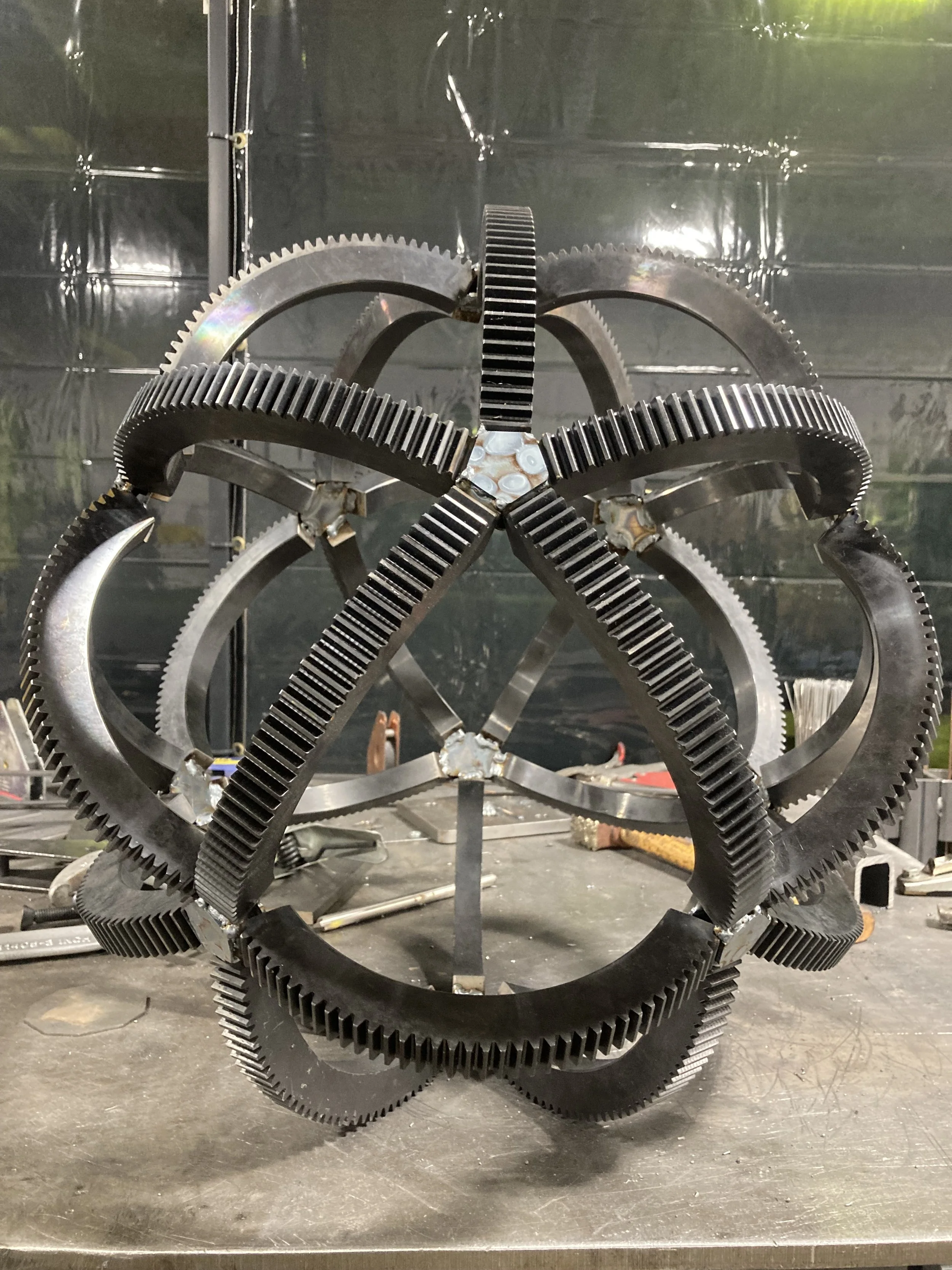 Rhombic Triacontahedron Rounded Icosahedron 120 Gear Rhombic Triacontahedron Dynamic Gear Sculpture Stainless Platonic Solids Brass Platonic Set Other Geometric Weldments Mjolnir Locomotive Incinerator Project Other Weldments and Sculptures